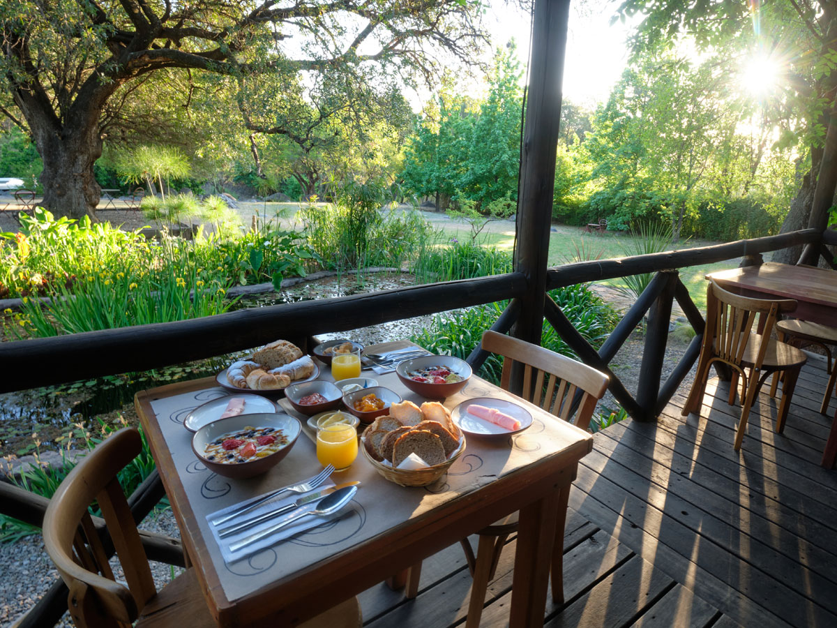 Alejada de las habitaciones y a unos pasos del arroyo Yacanto, se encuentra la piscina.